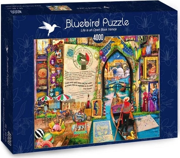 Ontdek de magie van Venetië op een groots beeld samengesteld uit 4000 stukjes. Deze premium BLUEBIRD-puzzel biedt een gedetailleerde illustratie uit de serie “Het leven als een open boek” en vormt na het leggen een indrukwekkend formaat van ca. 136 × 96 cm. Ideaal voor ervaren puzzelaars die op zoek zijn naar uitdaging, ontspanning en decoratie in één. Geniet van hoogwaardige afwerking, precisie-uitsparingen en rijke kleuren voor urenlang plezier.