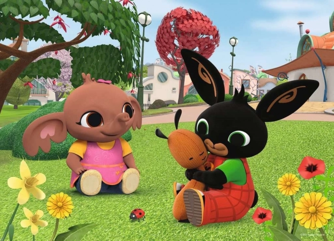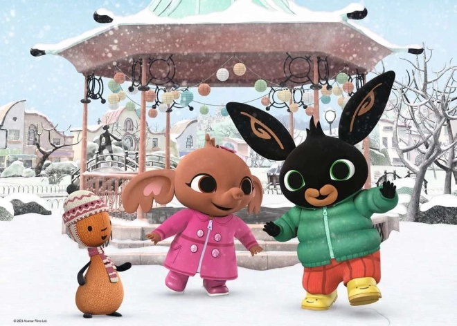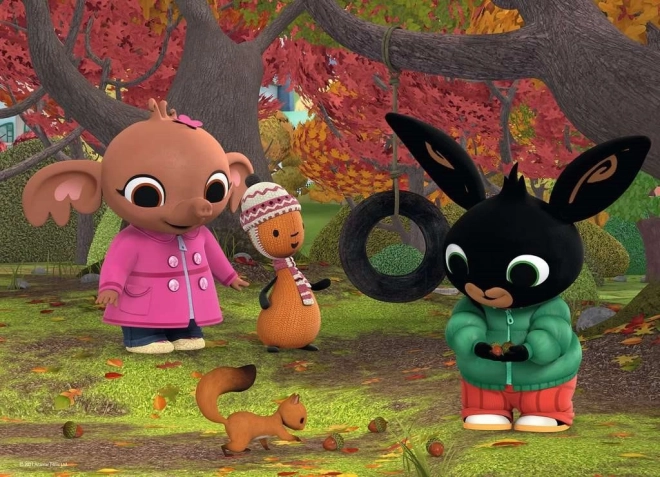Seizoensmotieven en vrolijke scènes uit de serie Bing prikkelen de kinderlijke verbeelding en maken van elke puzzelsessie een nieuwe belevenis.