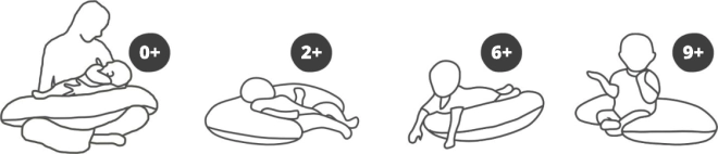 Multifunctioneel kussen dat geschikt is voor ondersteuning tijdens de zwangerschap en bij het voeden.