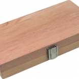 Elegant speelbord van natuurlijk hout dat opvouwt tot een kistje en een vilten voering heeft voor een soepele beweging van de schijven en comfortabel spel.