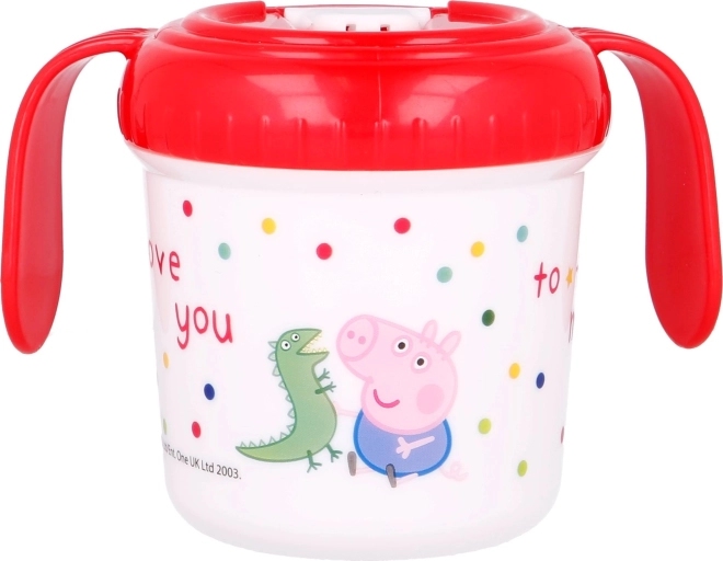 Beker met oortjes Peppa Pig is ontworpen voor kleine kinderen die leren drinken. De deksel met tuit voorkomt morsen en de kleurrijke afbeeldingen met het favoriete tekenfilmfiguurtje maken drinken leuker.