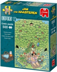 Ontdek een knotsgekke picknickscène vol verrassingen en de typische elementen waar fans van JAN VAN HAASTEREN van houden – de beroemde haaienvin, “zwervende” handen, een kunstgebit, Sinterklaas en zelfs het zelfportret van de auteur ontbreken niet. Elke legbeurt onthult weer een nieuwe kleine grap en garandeert plezier keer op keer.