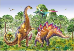 Ontdek de wereld van prehistorische wezens met twee kleurrijke afbeeldingen die kinderen enthousiasmeren en bezighouden. Met in totaal 2×48 stukjes zijn de puzzels ideaal voor kleuters – het leggen is leuk, motiverend en ontwikkelt tegelijk motoriek, logica en aandacht. De voltooide afbeeldingen kunnen kinderen verder bekijken en hun eigen verhaaltjes erbij verzinnen.