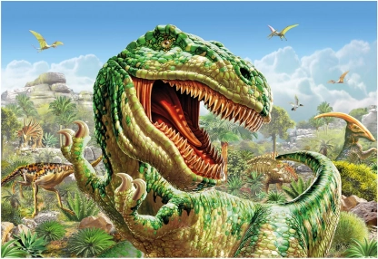 - 2 dinomotieven in een weelderige prehistorische natuur