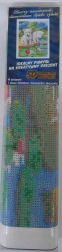 - Canvas met voorbedrukt motief, set gekleurde steentjes, applicatiepen, bakje, was, symboollegenda