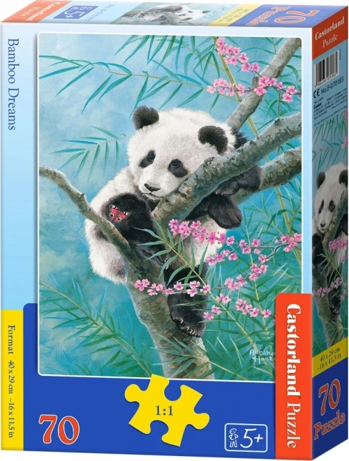 Kleurrijke kinderpuzzel met het motief Bamboo Dreams bevat 70 stukjes en vormt na het leggen een afbeelding van 40 × 29 cm. De hoge kwaliteit en intense kleuren ondersteunen concentratie, geduld en de ontwikkeling van de verbeelding bij jonge kinderen.