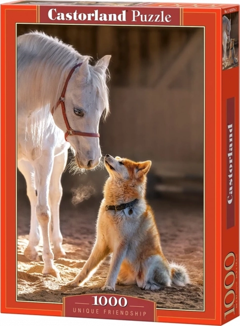 Ontdek het plezier van puzzelen met een puzzel van 1000 stukjes die een ontroerende scène van een paard en een hond vastlegt. De hoge kwaliteit en nauwkeurige uitsparingen zorgen voor soepel puzzelen, terwijl de rijke kleuren en de gedetailleerde illustratie elke liefhebber van puzzels en dieren zullen bekoren.