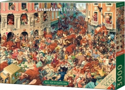 Ontdek het dynamische en inventieve tafereel van het feest in Pamplona in de unieke stijl van Waldemar Kazak. Deze puzzel met 3000 stukjes trekt je mee in een verhaal vol humor, details en gebeurtenissen die zich niet alleen op de hoofdroute van de beroemde stierenrennen afspelen.