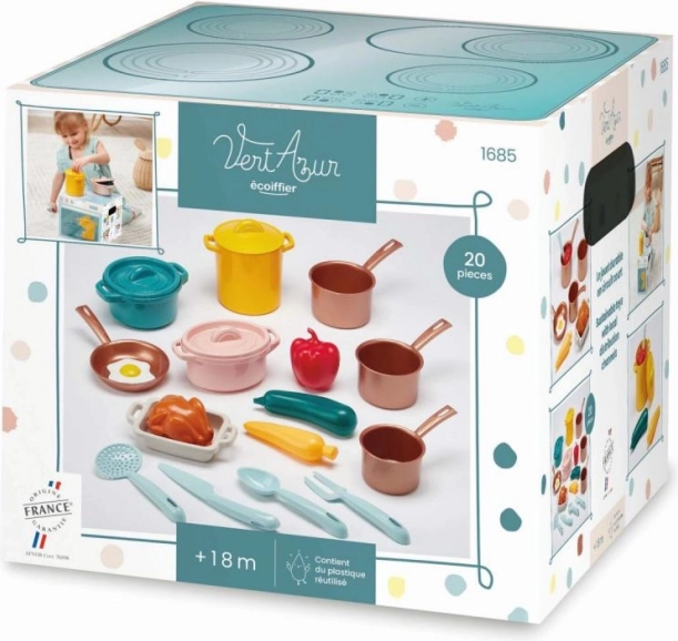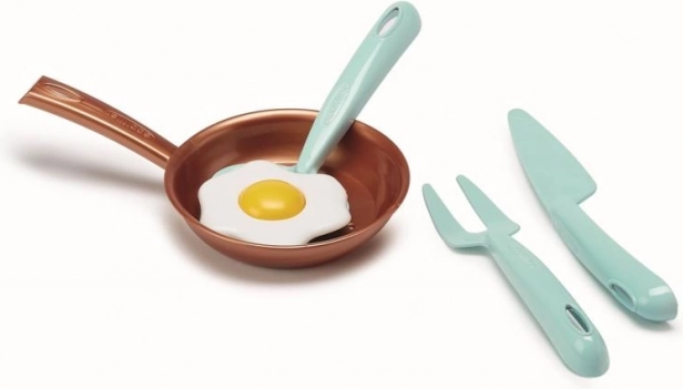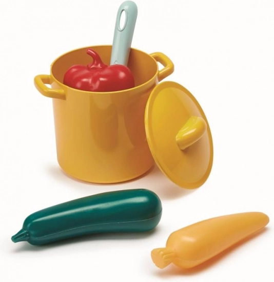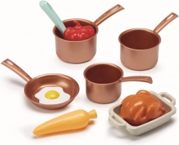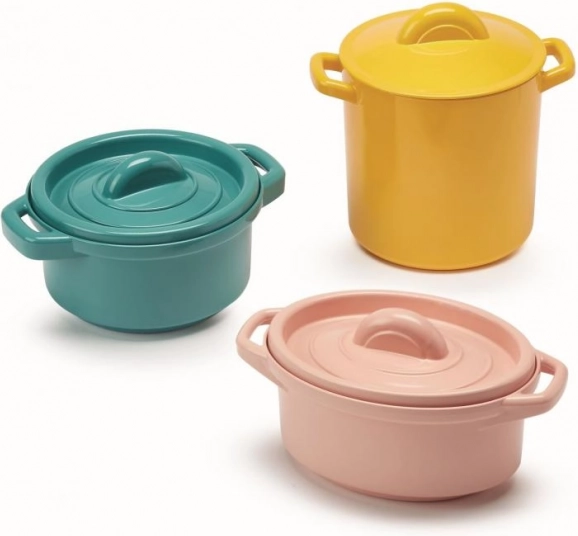 De set bevat een scala aan kleurrijke potten en pannen die de nieuwsgierigheid van kleine koks stimuleren.