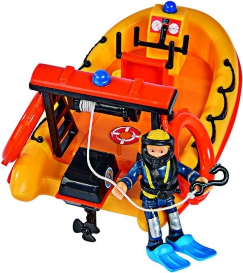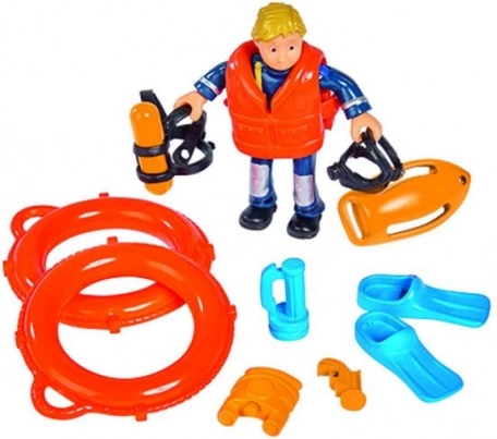 Het speelgoed bevat een rijke uitrusting, inclusief een beweegbaar Penny-figuur in reddingsoutfit. Het figuur wordt geleverd met duikvinnen, een afneembaar zwemvest en helm. Producten onder de licentie van Brandweerman Sam van Simba zijn veilig en bedoeld voor kinderen vanaf 3 jaar.
