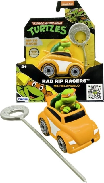 Auto’s uit de serie Teenage Mutant Ninja Turtles Rad Rip Racers zijn gemaakt voor razendsnelle races. Plaats het trekkoord, trek eraan en kijk hoe de Ninja Turtles het circuit op schieten!