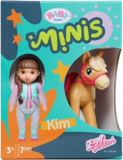 Ontdek de magie van de miniwereld met BABY born Minis Kim en haar geliefde paardje. Kim draagt een stijlvolle rij-outfit met een roze helm en het paardje heeft een zadel en hoofdstel in bijpassende kleuren. Het worteltje is een grappig accessoire waarmee kinderen gemakkelijk allerlei verhalen en speelscenario’s bedenken.