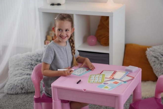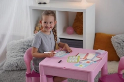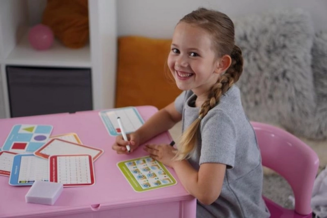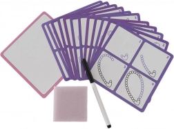 Een leuke en praktische set voor kleine kunstenaars die handigheid, concentratie en geduld stimuleert. Bevat 12 herbruikbare kaartjes, een speciale uitwisbare stift en een sponsje voor eenvoudig wissen, zodat het kind keer op keer kan oefenen met tekenen.