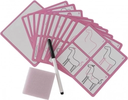 - 12 kaartjes met afbeeldingen, speciale uitwisbare stift, sponsje