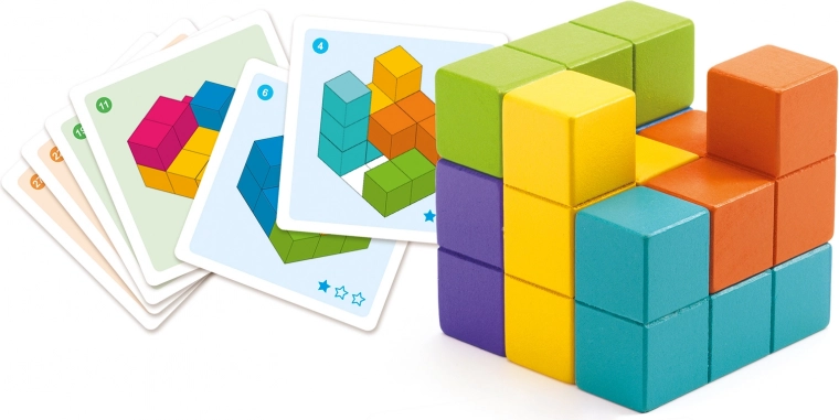 De set bevat een stevige bouwbasis, een assortiment verschillend gevormde houten blokjes en 30 logische uitdagingen. Het compacte formaat maakt meenemen eenvoudig, zodat je het spel thuis, onderweg en op school kunt spelen. Ideaal voor zelfstandig spel voor kinderen vanaf 7 jaar en ook geweldig als familiepuzzel-uitdaging.