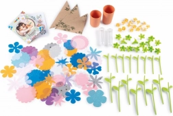 De bloemenmaker met 104 accessoires biedt creatief spel en uitgebreide uitrusting. Bevat stickers voor decoratie en een overzichtelijke handleiding met inspiratie. Bloemen kunnen worden gemaakt van textielbloemblaadjes die vooraf geperforeerd zijn voor de gemak van kleine bloemisten.