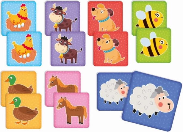 Spellen om het geheugen te trainen door paren te zoeken met vrolijke illustraties van dieren.