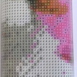 - Canvas met voorgedrukt motief en kleeflaag, applicatiepen, schaaltje, was, set gekleurde steentjes, symbolenlegenda
