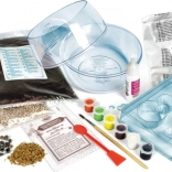 Inhoud van de verpakking: tweedelig terrarium, turf, grind, zaden, plakkaatverf, lijm, mal voor gipsafgietsels, penseel, schepje, zakje gips – calciumsulfaat (EINECS: 231-900-3), geïllustreerde handleiding met teksten in CZ (SK, EN, SV, FI, NO, DK, PL, HU).