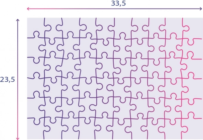 De afmetingen van de gelegde puzzel zijn 33,5 x 23,5 cm, ideaal voor kinderspel of als decoratie.