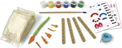 De set is ideaal om samen met kinderen te knutselen. Hij leert hen de basis van modelleren en schilderen, ontwikkelt geduld en biedt veel creatieve activiteiten, van een pennenhouder en droomvanger tot een papieren windmolentje versierd met zaadjes.
