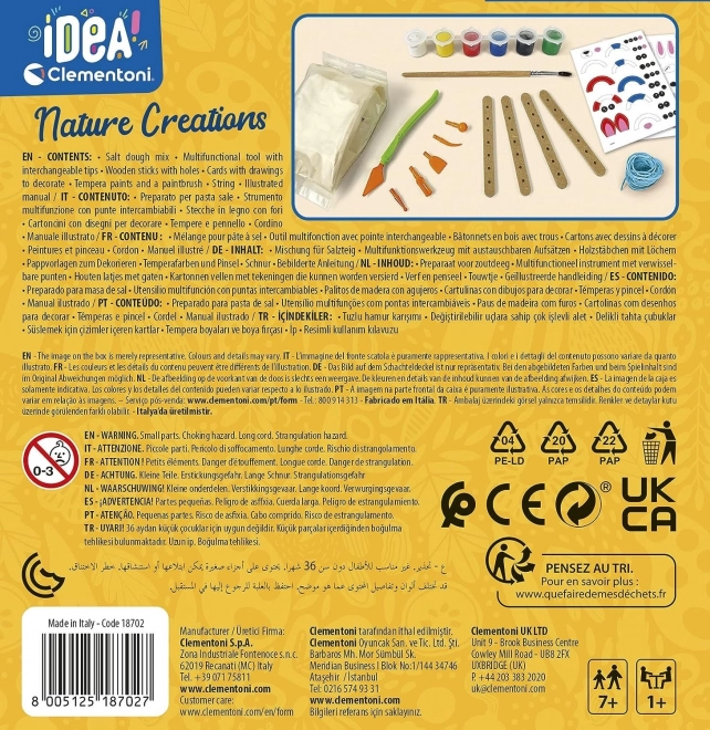 Deze creatieve set CLEMENTONI IDEA Natuur bevat alles wat kinderen nodig hebben om prachtige decoraties van zoutdeeg te maken. Modelleer, steek uit, draai, schilder en versier – de fantasie kent geen grenzen. De afgewerkte creaties kunnen de kinderkamer versieren of dienen als lieve cadeautjes.