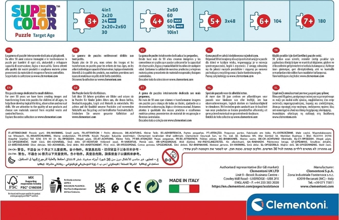 De voltooide puzzels kun je opnieuw uit elkaar halen, of verlijmen en zo een originele decoratie voor de kinderkamer maken. Hoogwaardige druk en levendige kleuren van Clementoni zorgen voor een lange levensduur en een aantrekkelijke uitstraling.