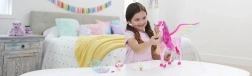 Vlieg op de vleugels van fantasie met de roze pegasus van Barbie! Deze magische pegasus biedt licht- en geluidseffecten, aangevuld met een magische hond en zoete accessoires.