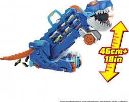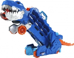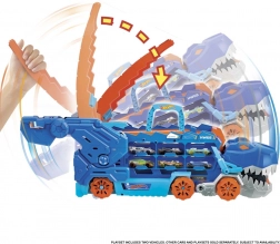De unieke dinosaurus-transporter combineert een opslag voor meer dan 20 metalen autootjes met actievol spel. In transportmodus hoef je alleen aan het handvat te trekken en te kijken hoe de T‑Rex autootjes “opschrokt” onderweg. Met één beweging van de staart verander je hem in een mechanische T‑Rex met lichteffecten en dinosaurusgeluiden.
