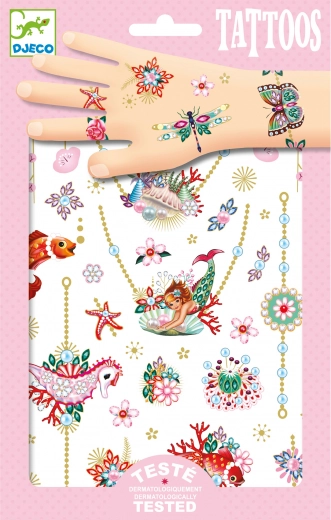 Versier je huid met elegante sieradenmotieven met de tijdelijke tatoeages van DJECO. De set bevat 2 vellen met armbanden, ringen en kettingen. De applicatie is eenvoudig, snel en dermatologisch getest, zodat je kunt genieten van veilige en creatieve fun met vriendinnen.