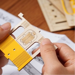 Laser gesneden stukken van 2 mm linde multiplex voor nauwkeurige en gemakkelijke montage.
