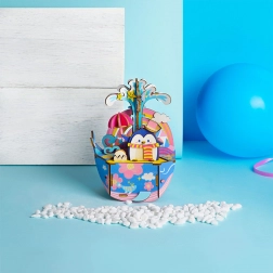 De set bevat 123 voorgezaagde en genummerde houten stukjes van hoogwaardig multiplex, die eenvoudig te monteren zijn volgens een gedetailleerde handleiding. Na voltooiing meet het model 12,5 cm lang, 11 cm breed en 16,4 cm hoog, en is een originele decoratieve item geschikt voor elk interieur. De aanbevolen leeftijd voor deze bouwset is 14 jaar en ouder, waardoor het een geweldig cadeau is voor oudere kinderen en volwassenen.