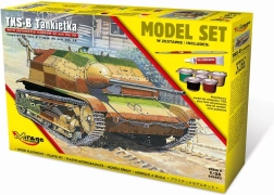 Getrouwe bouwset van de TKS-B tankette in schaal 1:35 voor enthousiaste modelbouwers. De set bevat alles voor een snelle start: kunststof model, vijf acrylverven, lijm en een penseel. Ideaal voor de leeftijd 14+ en een uitstekende keuze voor liefhebbers van Poolse pantsertechniek met het NKM 20 mm wz. 38 kanon.