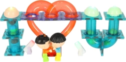 Kinderen kunnen experimenteren met vormen, zwaartekracht en de snelheid van de knikkers, verschillende routes uitproberen en de constructie testen met gewone en lichtgevende knikkers. Spelen bevordert concentratie, geduld en samenwerking.