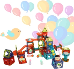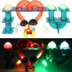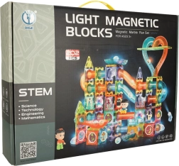 Deze creatieve STEM-bouwset combineert magnetische onderdelen met transparante knikkerbanen. Lichtmodules en reflectoren laten elke constructie stralen en toveren het spel om tot een fascinerend lichteffect – dat vooral in het donker prachtig uitkomt. De onderdelen zijn van duurzaam plastic, magnetische verbindingen zorgen voor stabiliteit en de tunnelelementen worden stevig vastgezet.