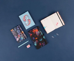 Dankzij het compacte formaat van 13 × 21 cm past het notitieboek gemakkelijk in je handtas of rugzak. Het binnenvak bewaart visitekaartjes of kleine papieren, terwijl de lintbladwijzer helpt om direct je lopende pagina’s te vinden. Gelijnd papier biedt een overzichtelijke structuur voor nette en leesbare notities.