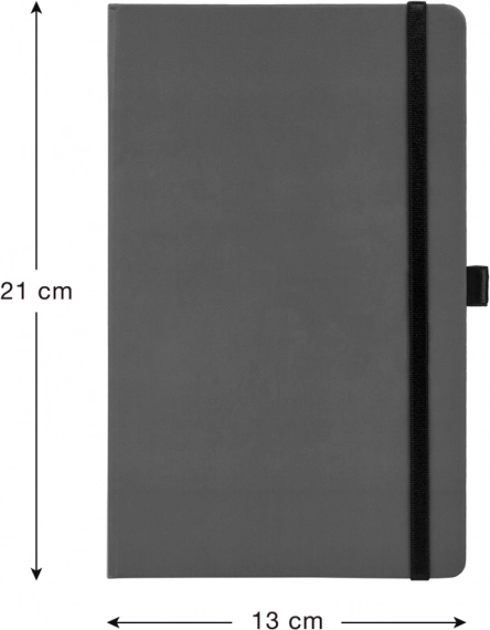 Het formaat 13 × 21 cm past in elke tas. De elastische band houdt het notitieboek stevig gesloten en dankzij de penlus heb je je pen altijd bij de hand.