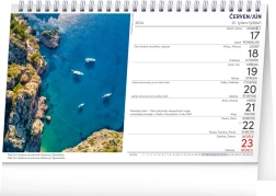 Geniet elke dag van inspirerende waterfoto's – van een kalme waterspiegel tot woeste watervallen en gletsjermeren. Deze bureaokalender 2024 biedt een Tsjechisch‑Slowaaks kalendarium, een overzicht van feestdagen en gedenkdagen, maanfasen en een lijst met Tsjechische en Slowaakse namen in het praktische formaat 23,1 × 14,5 cm.