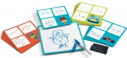 Dankzij het uitwisbare bord en de stift kunnen kinderen zonder zorgen proberen, corrigeren en hun creaties verbeteren. De stapkaarten zijn duidelijk en stimuleren zelfstandigheid en concentratie.