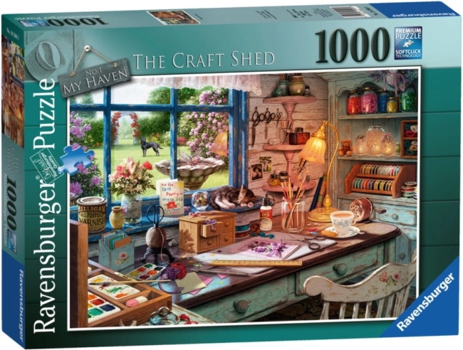 Geniet van ontspanning met de hoogwaardige RAVENSBURGER puzzel uit de serie Mijn toevluchtsoord. Het motief Ambachtelijke werkplaats biedt veel details en plezier tijdens het leggen. De verpakking bevat 1000 stukjes, en na voltooiing heeft de puzzel een afmeting van ongeveer 70 × 50 cm.