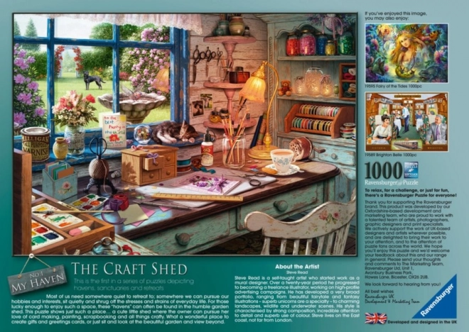 Ontdek de charme van een rustige ambachtelijke werkplaats in een origineel motief van kunstenaar Steve Read. De hoge afwerkingskwaliteit en precieze uitsnedes zorgen ervoor dat de stukjes perfect in elkaar passen, waardoor het leggen een ontspannende bezigheid is voor het hele gezin.