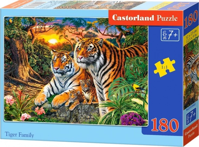 Kinderpuzzel Tiger Family met 180 stukjes en afmetingen 32 × 23 cm. Hoogwaardige afwerking, levendige kleuren, ideaal voor kinderen van 6–8 jaar. Leuk en leerzaam.