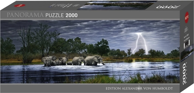 Panoramische puzzel Olifantenkudde Botswana uit de Alexander von Humboldt Edition biedt een adembenemend zicht op de wilde natuur. Bevat 2000 stukjes voor een lange en leuke puzzeluitdaging.
