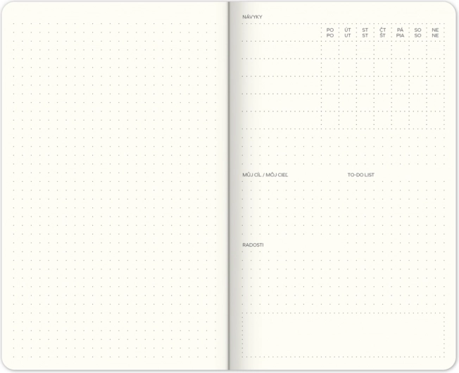 Dankzij de ongedateerde indeling kun je op elk moment in het jaar starten en gewoonte‑tracking, to‑dolijsten en doelen in één praktisch schrift combineren. Het compacte formaat 13 × 21 cm past in handtas en rugzak en is ideaal voor onderweg, school of werk.