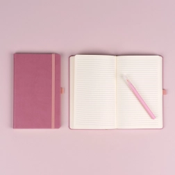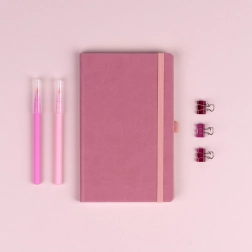 De pennlus, elastische band en stoffen bladwijzer houden alles binnen handbereik en je notities altijd op de juiste plek.