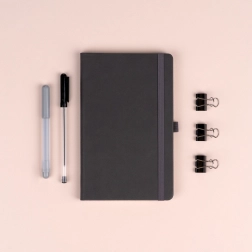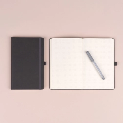 De elastische band houdt het notitieboek veilig gesloten, de textielen bladwijzer markeert je pagina en de lus houdt je pen precies waar je die nodig hebt.