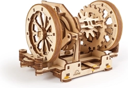 Na het bouwen geniet u van de vloeiende werking van de houten tandwieltreinen en de mogelijkheid om het mechanisme handmatig te activeren, zonder lijm.