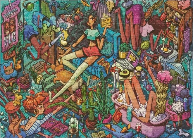 Duik in een fantasiewereld met deze uitzonderlijke puzzel van de bekende karikaturiste Marija Tiurina. De driehoekige doos is niet alleen esthetisch aantrekkelijk, maar ook praktisch voor opslag. Afmetingen van de gelegde puzzel zijn ongeveer 70 x 50 cm, wat een prachtig zicht biedt op de gedetailleerde illustratie.