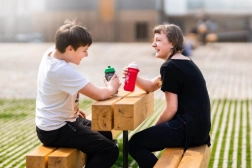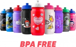 De fles is gemaakt van recyclebare kunststoffen die voldoen aan de strenge Europese normen 2011/10 voor materialen die bedoeld zijn voor contact met levensmiddelen. Dankzij de schroefdop en de ergonomische vorm ligt hij goed in kinderhanden en lekt hij niet.