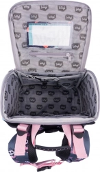 Het klapsysteem maakt snelle toegang tot boeken direct vanaf de schoolbank mogelijk. Binnenin zit een transparant vak met rooster en een organizer met elastiek voor een gelijkmatige gewichtsverdeling.